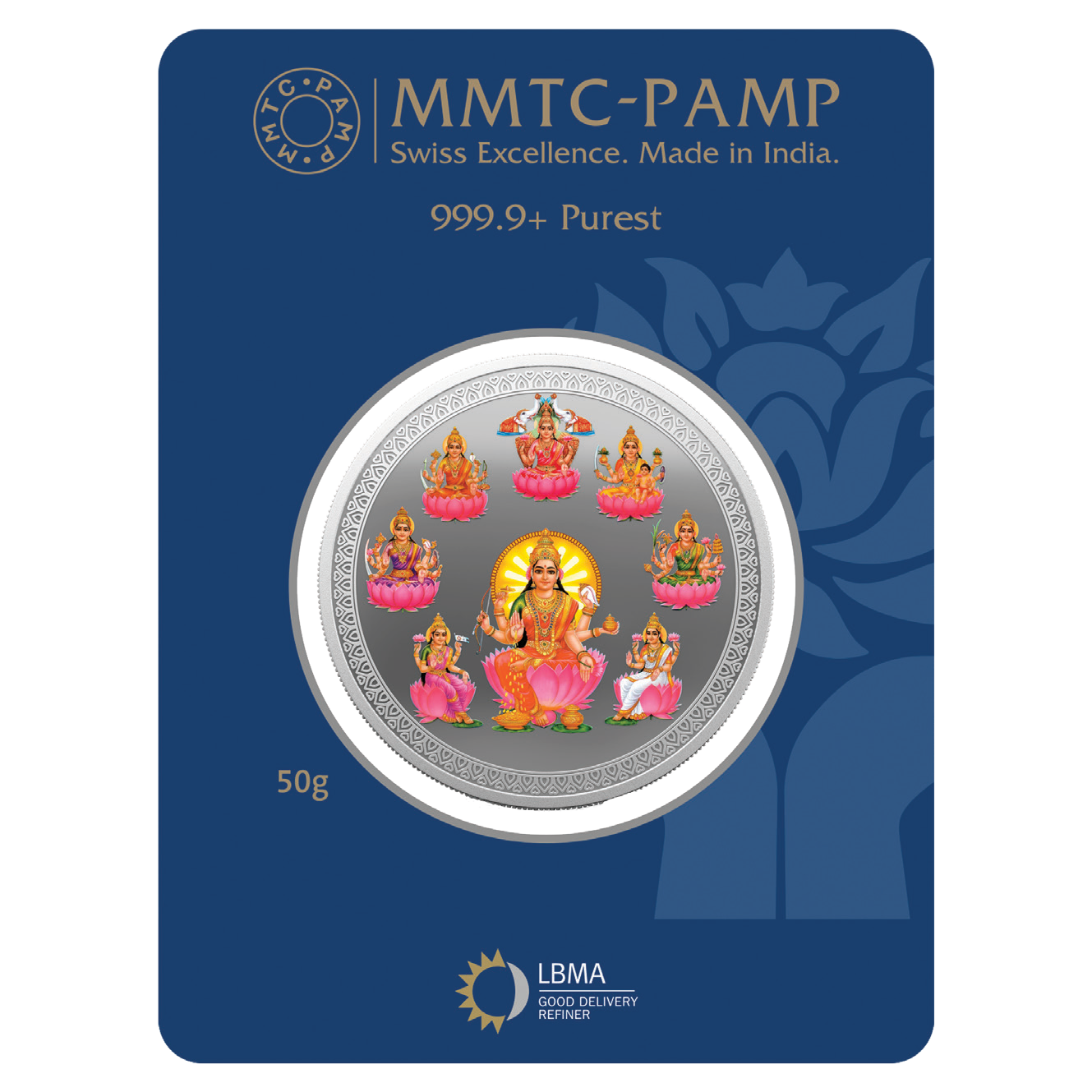 Our 99.99%+ Purest Silver designs also offer a wide variety of exquisitely crafted products that honour popular festivals, and religious observances celebrated throughout India. The decorative details on the coins and bars are further enhanced by the mirror finish that add depth to the gleam, and beauty of the coin or bar you bring home. From Sukh Samridhi, Lord Ganesha, Ashta Lakshmi, the range goes further to include deities like Guru Nanak Dev Ji and Lord Balaji among others.